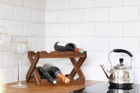 Weinregal aus Akazienholz, klappbar, passend für 6 Flaschen Länge 31 cm